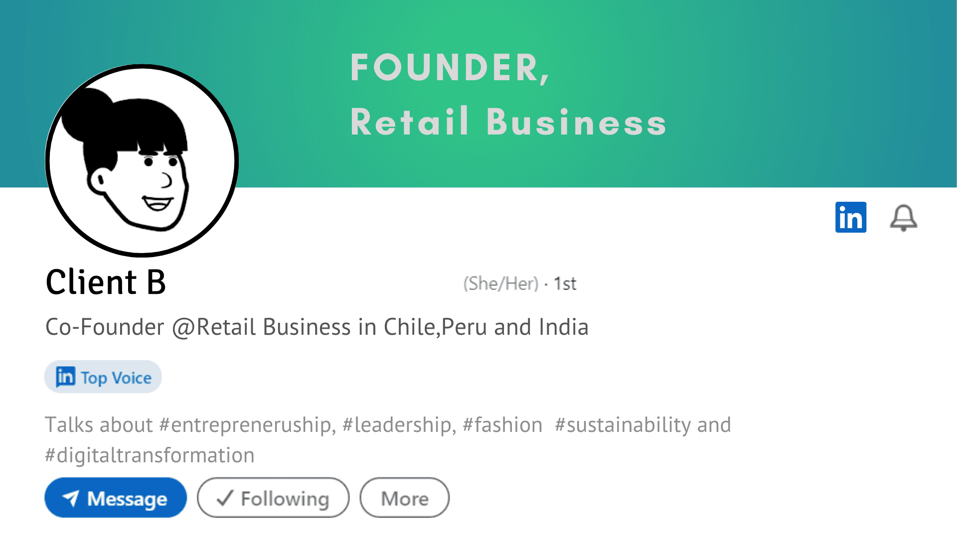 PS: We prioritize client privacy. Profiles are caricatures reflecting our clients' professions.