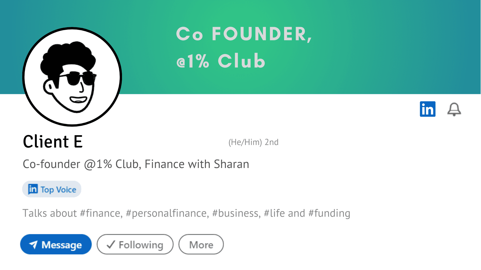 He is an established name in the finance niche so when we took over his LinkedIn - it had to be in sync with his instagram, newsletter and company news. We aligned all the pieces together and got his entrepreneurial side at the forefront. 60% generic content, 20% personal finance and 10% personal story. That is where people saw a new side and followed him!