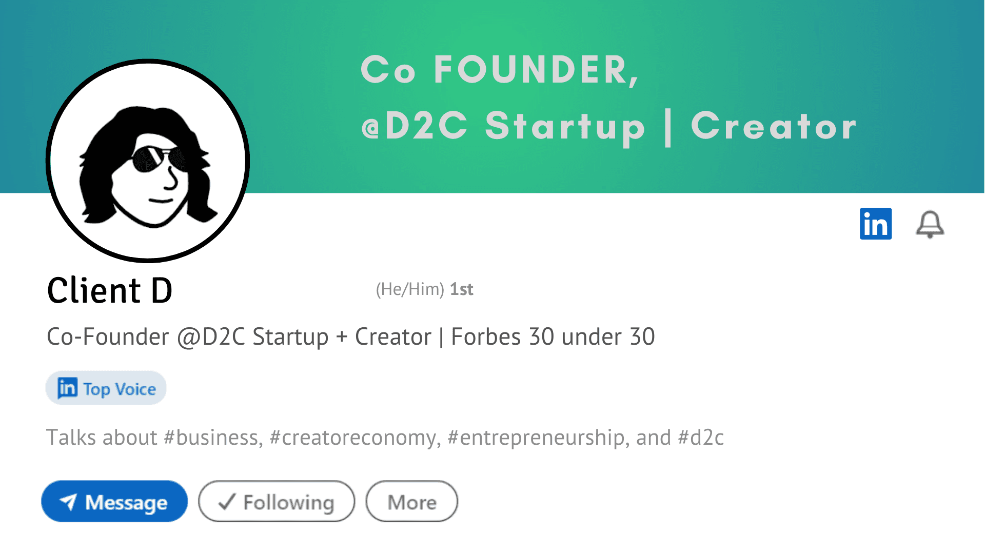We have done it for 200+ clients, generated 100 million views and got them viral - so rest assured, we know LinkedIn in and out. If you are ready to invest 2 hours per month, we can sort this for you!
